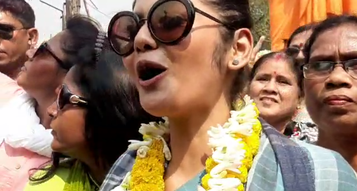 খেলা হবে গান ও স্লোগানের মাধ্যমে পদযাত্রা করে প্রচারে নামলো তৃণমূল প্রার্থী সায়নী ঘোষ