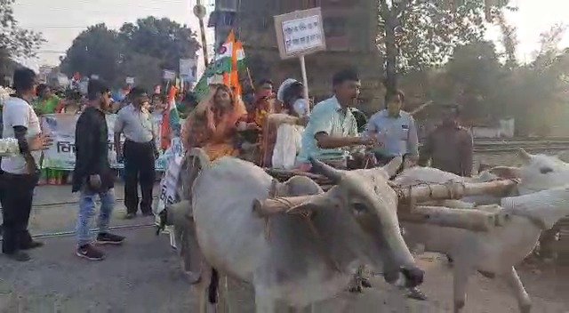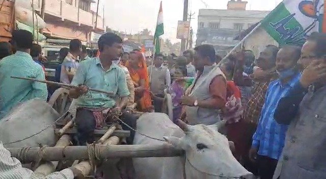 গরুর গাড়ি নিয়ে পেট্রো পণ্যের মূল্যবৃদ্ধিতে প্রতিবাদে নামল তৃণমূল
