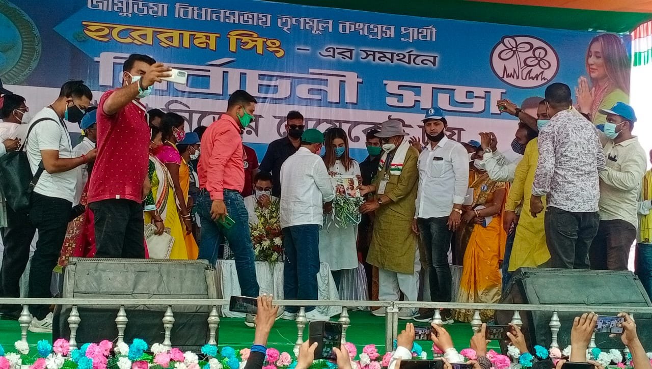 নিজস্ব সংবাদদাতা ২১ এপ্রিল ২০২১পশ্চিম বর্ধমান: জামুড়িয়া বিধানসভা কেন্দ্রের তৃনমুল কংগ্রেসের প্রার্থী হরেরাম সিং এর সমর্থনে সোহম চক্রবর্তী ও সায়ন্তিকা ব্যানার্জী কেন্দা পুলিশ ফাড়ি ফুটবল ময়দানে একটি নির্বাচনী জনসভা সারলেন বুধবার।