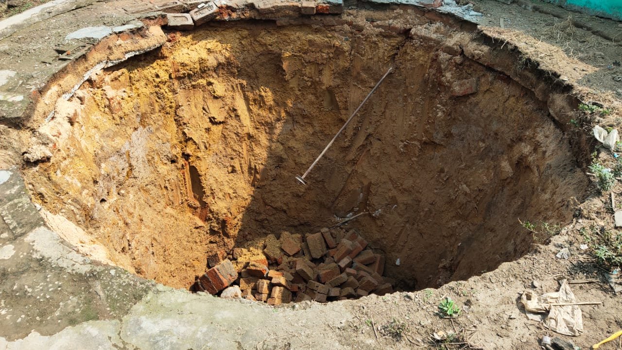 নিজস্ব সংবাদদাতা,পশ্চিম বর্ধমান,জামুড়িয়া, ২৪ ফেব্রুয়ারি২০২১:কেন্দায় ভগুর ডাঙ্গা ডাঙ্গালপাড়া এলাকায় ধস ।মাটির গর্ভে জল তোলার আস্ত একটি কুয়া। রক্ষা পেলেন স্থানীয় একাধিক মহিলা।