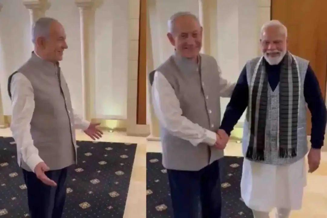 নেতানিয়াহু নিজের সোশ্যাল মিডিয়ায় একটি ভিডিও পোস্ট করেন। সেখানে দেখা যায়, তিনি ভারতীয় পোশাকে ঘরে ঢুকতেই মোদী এগিয়ে এসে তাঁকে আলিঙ্গন করেন। ভিডিওতে নেতানিয়াহু বলেন, নৈশভোজের আগে ভারতীয় পোশাক পরে মোদীজিকে একটু চমক দিতে চেয়েছিলেন। তাঁর পরনে ছিল পাথর-রঙা নেহরু জ্যাকেট, সাদা লম্বা হাতার কুর্তা-স্টাইল শার্ট, গাঢ় নীল ট্রাউজার্স ও ফর্মাল জুতো। অন্যদিকে মোদীর পরনে ছিল সাদা কুর্তা-পায়জামা, গাঢ় নীল সোয়েটার ও জ্যাকেট, সঙ্গে কাঁধে মাফলার।