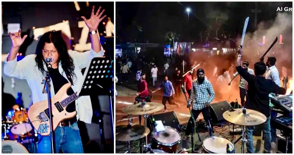 আয়োজকদের দাবি, বহিরাগত কয়েকজন অনুষ্ঠানে প্রবেশের চেষ্টা করেছিলেন। বাধা দেওয়ার পর তারা পাল্টা হামলা চালায় এবং মঞ্চ দখলের চেষ্টা করেন। ভিডিও প্রকাশ করে এক বাংলাদেশি যুবক দাবি করেছেন, হামলাকারীরা বাংলাদেশে কোনও সঙ্গীতানুষ্ঠান দেখতে চায় না।