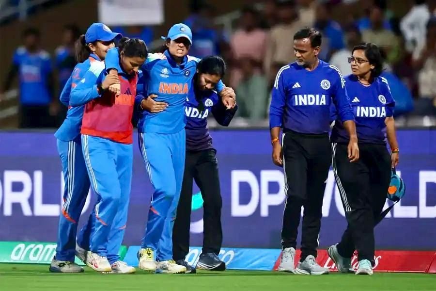 তবে মাঠের সবচেয়ে উদ্বেগজনক মুহূর্ত আসে বাংলাদেশের ইনিংসের ২১তম ওভারে। শারমিন আখতারের একটি শট থামাতে মিডউইকেটের দিকে ছুটে যান প্রতিকা রাওয়াল। বৃষ্টির কারণে পিছল আউটফিল্ডে পড়ে গিয়ে তিনি ডান পায়ের গোড়ালিতে চোট পান। যন্ত্রণায় কাতর হয়ে পড়েন মাঠে। সতীর্থ ও ফিজিও দ্রুত তাঁর পাশে পৌঁছন, স্টাফদের সহায়তায় তিনি মাঠ ছাড়েন। স্ট্রেচার আনা হলেও প্রতিকা নিজে হেঁটেই মাঠ ছাড়েন, তবে তাঁর চোখেমুখে ব্যথার ছাপ স্পষ্ট ছিল।