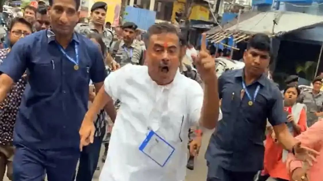 কলকাতা – ভোটের দিন দুপুরে Bhabanipur-এ হঠাৎই উত্তপ্ত পরিস্থিতির সৃষ্টি হয়। ‘বহিরাগত’ ঢোকার অভিযোগ তুলে কেন্দ্রীয় বাহিনীকে সঙ্গে নিয়ে এলাকায় দৌড়তে দেখা যায় বিজেপি নেতা Suvendu Adhikari-কে। অন্যদিকে তাঁকে ঘিরে বিক্ষোভে ফেটে পড়েন তৃণমূল কর্মী-সমর্থকেরা, শুরু হয় স্লোগানযুদ্ধ, যা মুহূর্তে ছড়িয়ে পড়ে Kalighat চত্বরে।