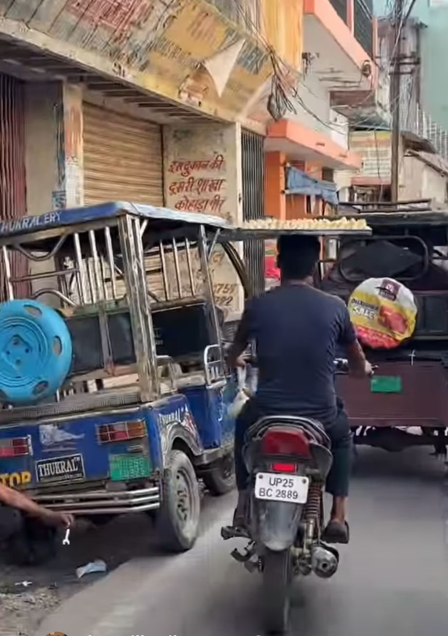 ‘বরেলীভাইব্স’ নামে একটি ইনস্টাগ্রাম অ্যাকাউন্টে পোস্ট করা ওই ভিডিয়োয় দেখা যায়, তরুণটি অত্যন্ত সাবধানে বাইক চালাচ্ছেন যাতে রেকাবিটি মাথা থেকে না পড়ে। আশ্চর্যের বিষয়, বাইক চলার সময়ও রেকাবিটি একটুও নড়েনি। পিছনে থাকা আরেক বাইক আরোহী পুরো ঘটনাটি রেকর্ড করেন এবং সেটিই এখন ভাইরাল হয়েছে নেটমাধ্যমে।