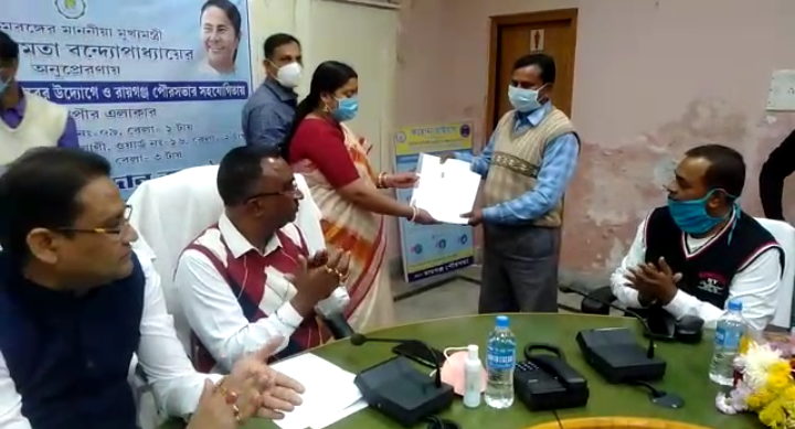 রাজ্যের মুখ্যমন্ত্রী মমতা বন্দোপাধ্যায়ের অনুপ্রেরনায় রায়গঞ্জ পুরসভার উদ্যোগে ৮৫ টি ভূমিহীন পরিবারের হাতে তুলে দেওয়া হল জমির নিঃশর্ত দলিল। রায়গঞ্জ পুরসভার সভাকক্ষে ভূমিহীনদের মধ্যে নিঃশর্ত দলিল বিলি অনুষ্ঠানে উপস্থিত ছিলেন রায়গঞ্জ পুরসভার চেয়ারম্যান সন্দীপ বিশ্বাস, ভাইস চেয়ারম্যান অরিন্দম সরকার, চেয়ারম্যান ইন কাউন্সিল বরুন ব্যানার্জি সহ জেলা ভূমি ও ভুমি সংস্কার দপ্তরের আধিকারিকেরা। ভূমিহীন মানুষেরা নিজস্ব জমির নিঃর্শত দলিল পেয়ে ধন্যবাদ জানিয়েছেন রাজ্যের মুখ্যমন্ত্রী মমতা বন্দোপাধ্যায়কে।বিধানসভা ভোটের আগে মঙ্গলবার তৃনমূল কংগ্রেস পরিচালিত রায়গঞ্জ পুরসভার উদ্যোগে ভূমিহীন মানুষদের মধ্যে জমির নিঃশর্ত দলিল বিলি করা হল। আগেও বহু ভূমিহীন মানুষের মধ্যে পাট্টা বিলি করার পর আজ রায়গঞ্জ পুরসভার ৯, ১১ ও ২৩ নম্বর ওয়ার্ডের ৮৫ জন ভূমিহীন মানুষের হাতে জমির নিঃশর্ত দলিল তুলে দেওয়া হল। রায়গঞ্জ পুরসভার ভাইস চেয়ারম্যান অরিন্দম সরকার জানিয়েছেন, রাজ্যের মুখ্যমন্ত্রী মমতা বন্দোপাধ্যায়ের নির্দেশে রাজ্যের ভূমিহীন মানুষদের নিজস্ব জমি প্রদানের জন্য রায়গঞ্জ পুরসভার উদ্যোগে ৮৫ টি ভূমিহীন পরিবারের হাতে জমির নিঃশর্ত দলিল তুলে দেওয়া হল। ভূমিহীন পরিবারেরা এখন তাদের নিজস্ব জমি হওয়ায় খুশী।