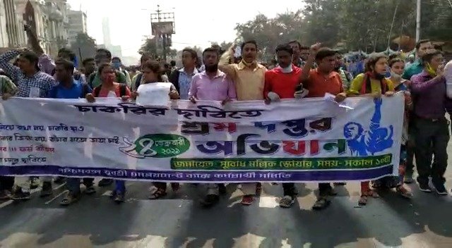 সুবোধ মল্লিক স্কোয়ার থেকে এই প্রতিবাদ মিছিল শুরু হয়। যুবশ্রী প্রতিনিধিদের দাবি , ভাতা নয় চাকরি চাই। তাই তারা আজ পথে নেমেছে এবং শ্রমদপ্তর অভিযান করছে।