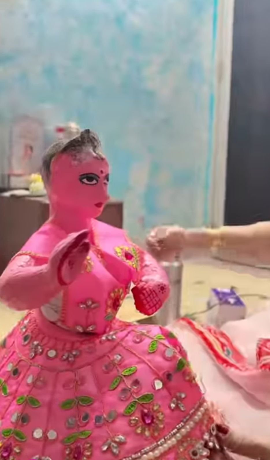 রাধারূপে মা লক্ষ্মী! রাত জেগে নিজ হাতে দেবীকে সাজালেন অপরাজিতা আঢ্য