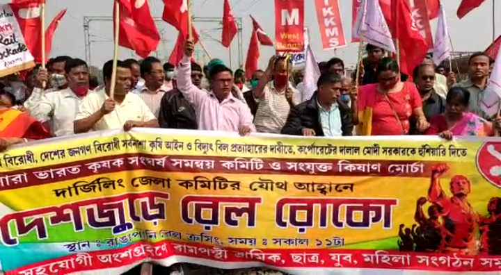 নিজস্ব সংবাদদাতা ১৮ফেব্রুয়ারি ২০২১শিলিগুড়ি: বৃহস্পতিবার শিলিগুড়ি রাঙাপানি রেল স্টেশন এর সামনে সারা ভারত কিষান সভার এবং বিভিন্ন বাম সংগঠনের পক্ষ থেকে রেল রোকো কর্মসূচি করা হয়। সারা ভারতের পাশাপাশি উত্তরবঙ্গের বিভিন্ন রেলস্টেশনে রেল রোকো কর্মসূচি পালন করা হয়।
