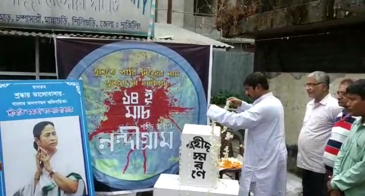 সামান্য এক কৃষক আন্দোলনকে কেন্দ্র করে সকলের নজরে আসে নন্দীগ্রামে ১৪ জন মানুষের মৃত্যর ঘটনায়। এরপর থেকেই তৃনমূল কংগ্রেসের পক্ষ থেকে এই দিনটিকে নন্দীগ্রাম শহীদ দিবস হিসেবে পালন করা হয়। সারা রাজ্যের পাশাপাশি নন্দীগ্রামে শহীদ বেদিতে শ্রদ্ধা জানানো হয়। রবিবার নন্দীগ্রাম শহীদ দিবস উপলক্ষে দার্জিলিং জেলা তৃণমূল কংগ্রেসের পক্ষ থেকে চম্পাসারিতে শহীদ বেদীতে ফুল দিয়ে মৃত ১৪ জনের উদ্দেশ্যে শ্রদ্ধাঞ্জলি জানান জেলা তৃণমূল কংগ্রেসের সাধারণ সম্পাদক মদন ভট্টাচার্য।
