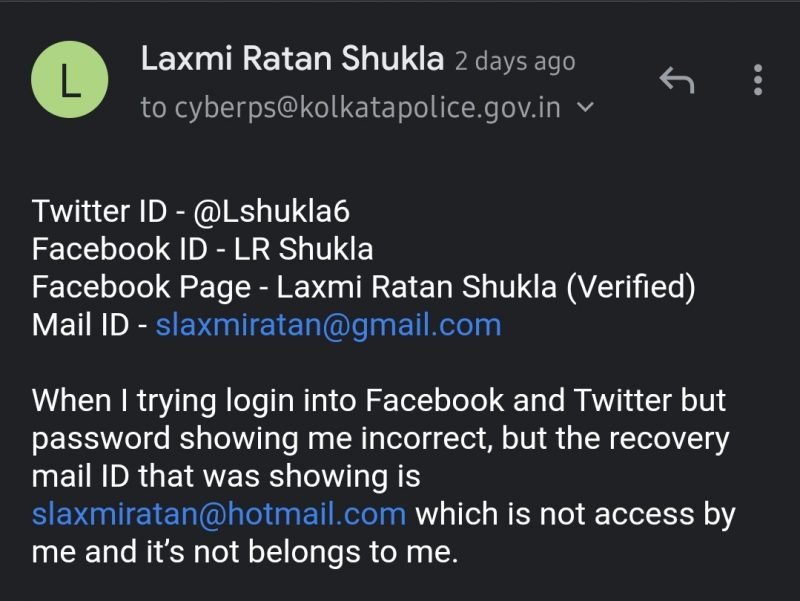 নিজস্ব সংবাদদাতা ২৬ এপ্রিল ২০২১ হাওড়া:আজ নিজে একটি ভিডিও বার্তায় তিনি জানিয়েছেন গত বৃহস্পতিবার থেকে তার ফেসবুক ও টুইটার একাউন্ট দুটি হ্যাক করা হয়েছে। তিনি জানান “কেউ আমার ফেসবুক ও টুইটার অ্যাকাউন্ট হ্যাক করেছে। তাই প্রোফাইল থেকে করা সমস্ত পোস্ট আর রিকোয়েস্ট উপেক্ষা করবেন।
