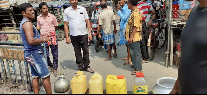 সুন্দরবনে পানীয় জল নেই, ভোট বয়কট করতে কলসি হাড়ি বালতি নিয়ে রাস্তা অবরোধ
