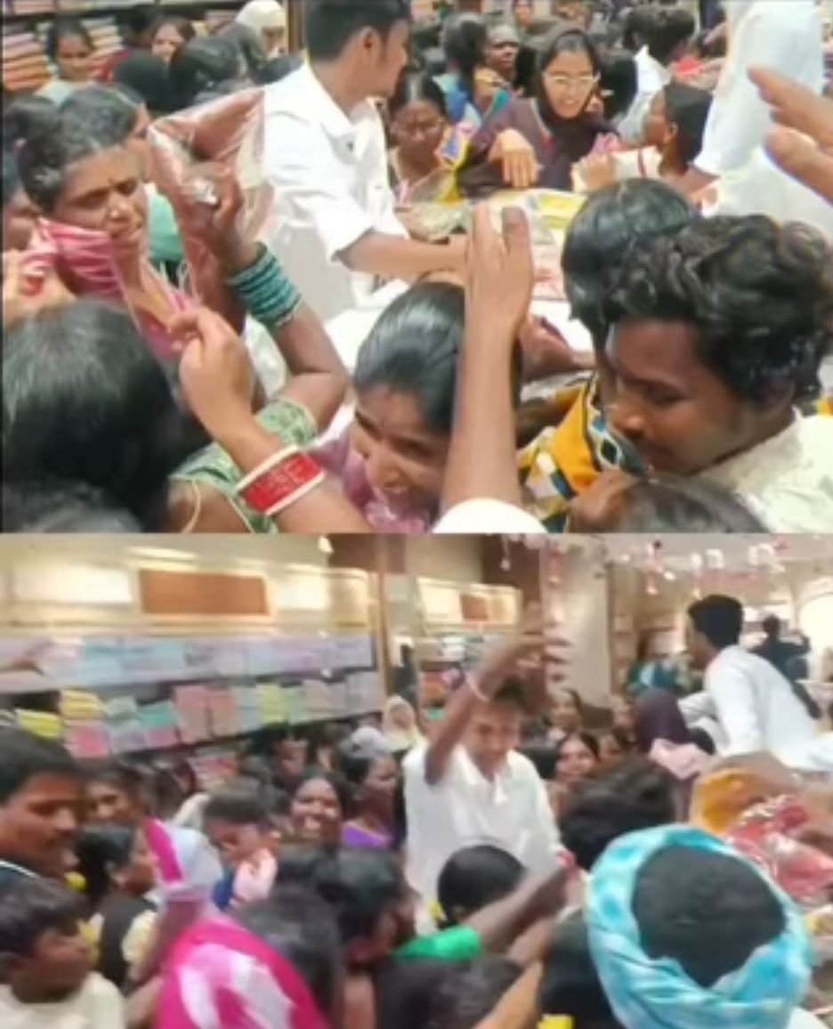 ভাইরাল – মাত্র ৯৯ টাকায় শাড়ির অফার ঘিরে তেলঙ্গানার মেডাক জেলায় এক মলে ঘটল চাঞ্চল্যকর ঘটনা। বিজ্ঞাপনী প্রচার দেখে শয়ে শয়ে মহিলা মলে ভিড় জমান। সীমিত সময়ের জন্য সস্তা শাড়ি বিক্রির ঘোষণা হতেই মুহূর্তে ভিড় উপচে পড়ে দোকানের ভিতরে ও বাইরে। পরিস্থিতি এতটাই বেগতিক হয় যে পদপিষ্ট হওয়ার আশঙ্কা তৈরি হয়।