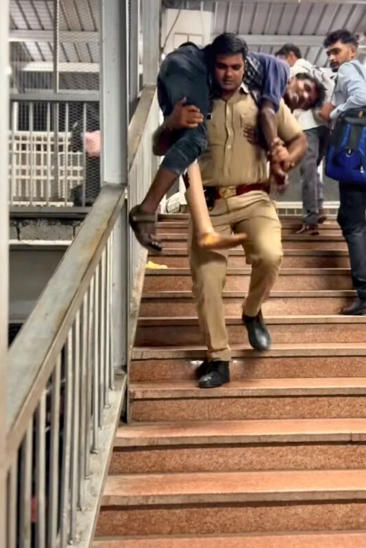 প্রতিবন্ধী যুবককে কাঁধে তুলে দৌড়োলেন পুলিশ আধিকারিক, তুলে দিলেন ট্রেনের কামরায়—ভাইরাল ভিডিয়োয় প্রশংসার ঝড়