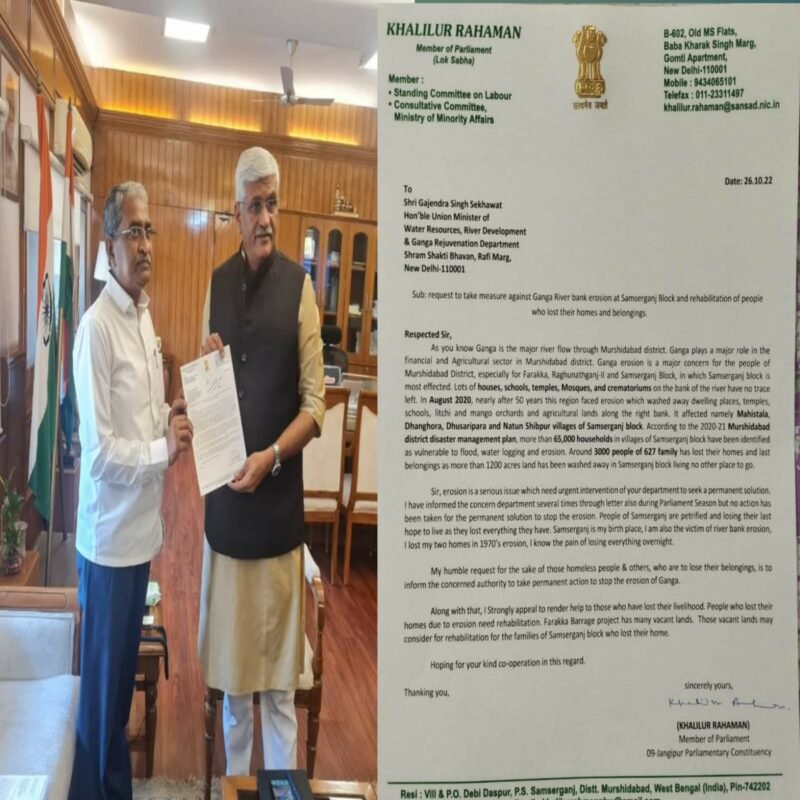 দিল্লিতে খোলা চিঠি গঙ্গাভাঙ্গন নিয়ে খলিলুর রহমানের