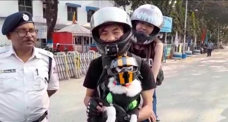 পোষ্যকে হেলমেট পরিয়ে জনগনকে হেলমেট পড়ার বার্তা