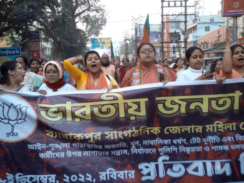 রাজ্য আইনশৃঙ্খলার অবনতি প্রতিবাদে বিজেপির বিক্ষোভ মিছিল বীজপুরে