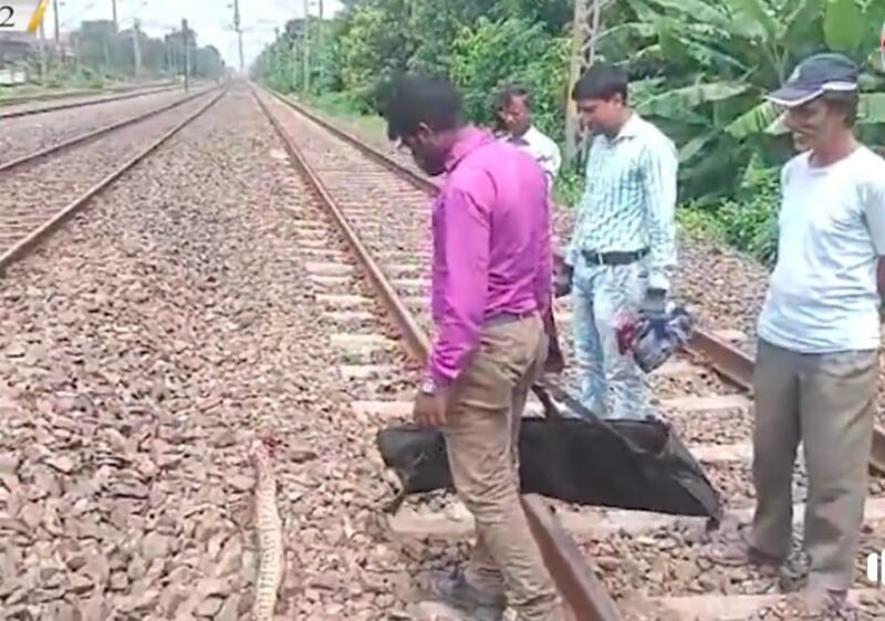 সোদপুরে রেল লাইন পেরোতে গিয়ে ট্রেনের তলায় কাটা পড়ল বিশাল আকৃতির একটি পাইথন সাপ