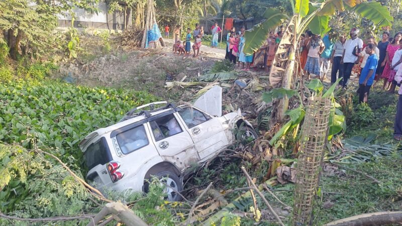 নিয়ন্ত্রণ হারিয়ে নয়ানজুলিতে স্করপিও পাল্টি হয়ে আহত ৫ যাত্রী, মৃত এক গবাদিপশু