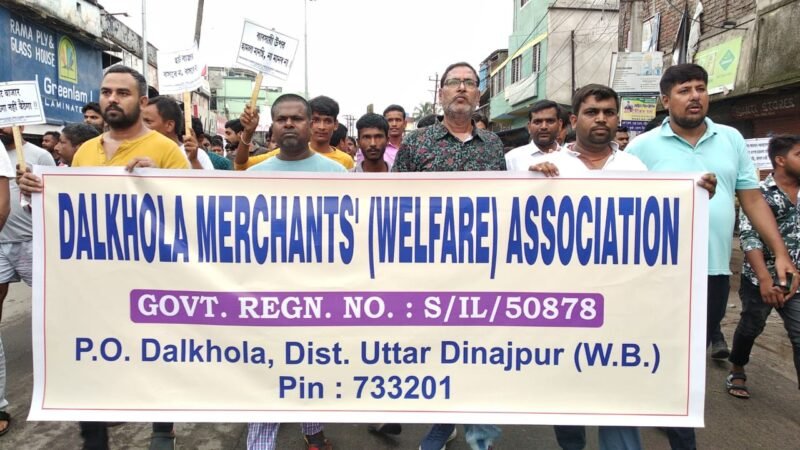 ডালখোলায় ব্যবসায়ীর উপরে হামলার প্রতিবাদে মিছিল