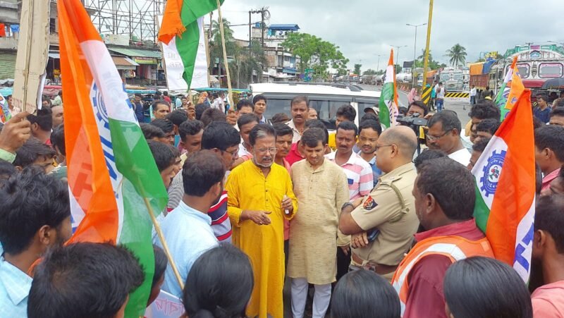 কেন্দ্র সরকারের শ্রমিক বঞ্চনার প্রতিবাদে জাতীয় সড়ক অবরোধ করে বিক্ষোভ INTTUC-র
