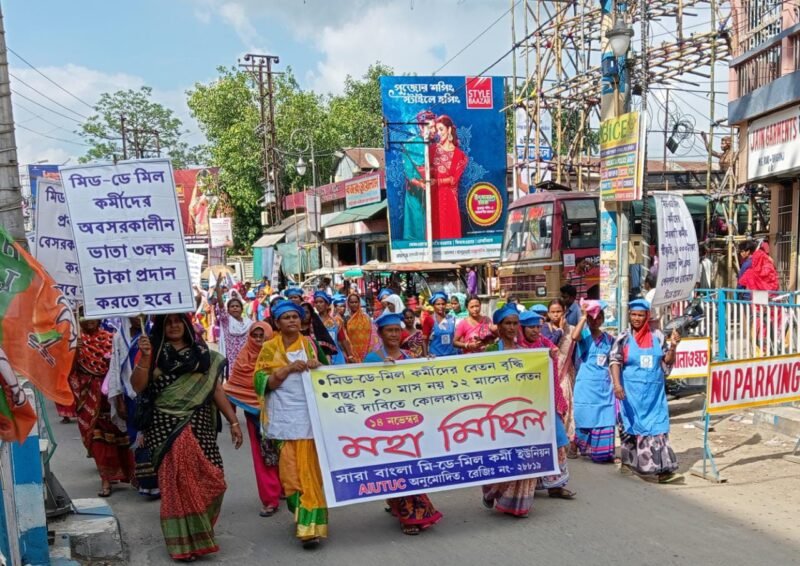 ১২ মাস বেতন সহ ১৩ দফা দাবিতে মিড ডে মিল কর্মীদের মিছিল